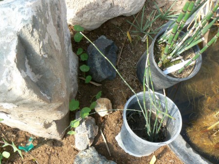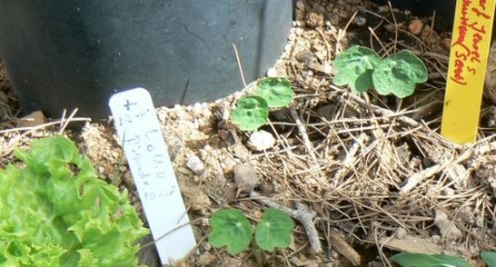 And today we received a cold front warning, so we’ll be covering the sensitive plants in the greenhouse. All the peppers, eggplants and tomatoes from last year are in the greenhouse now. They all look good so far. I brought the nasturtiums back up, maybe some will recover: